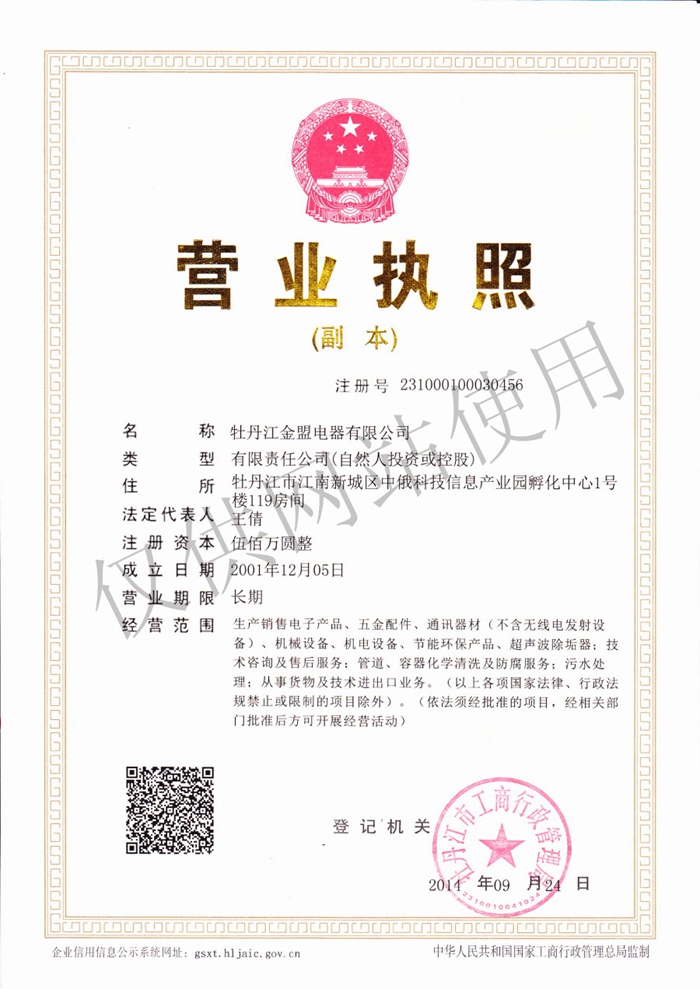 公司部分產品通過了黑龍江省工信委的科技新產品鑒定,以及黑龍江省質量監督部門的質量檢測。公司2012年通過了GB/T19001-2008/ISO9001:2008體系的認證,確保所生產的產品均能滿足先進、可靠、節能的要求。2013年公司榮獲牡丹江市“工業立市先進單位”。2014年《USP-M系列超聲波除垢裝置》獲得牡丹江市政府頒發“科學技術一等獎”。公司多年來連續獲得省市“重合同守信譽”榮譽稱號,獲得市AA級信譽企業認證。是各大石油及電力企業的入網單位。